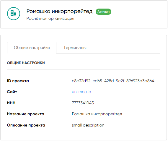 | Проект | — | интернет-магазин (web-сайт) мерчанта, зарегистрированный в системе Unlimco. Для каждого из интернет-магазинов заводится отдельный проект. Каждый проект может иметь несколько терминалов одного или нескольких банковских платежных шлюзов |