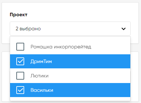Для выбора проекта установите курсор в окне «Проект». Выберите один или несколько проектов, отметив соответствующие чек-боксы. |