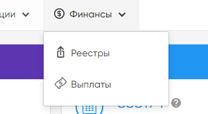 При переходе к разделу Финансы в главном меню требуется выбрать из выпадающего списка один из подразделов: Реестры или Выплаты.