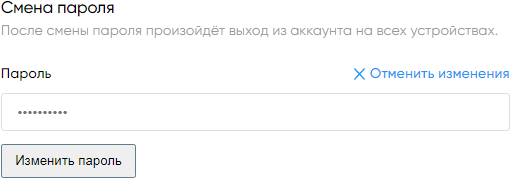 Для изменения пароля введите новый пароль в поле «Пароль» и нажмите «Изменить пароль». Для отмены нажмите «Отменить изменения».