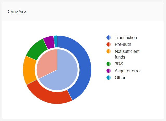 В блоке в виде диаграммы представлено соотношение успешных и неуспешных платежей с разделением неуспешных на группы по причинам отклонения.